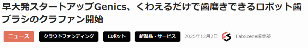 リンクはこちら:https://fabscene.com/new/news/genics-gen-robot-toothbrush-crowdfunding/